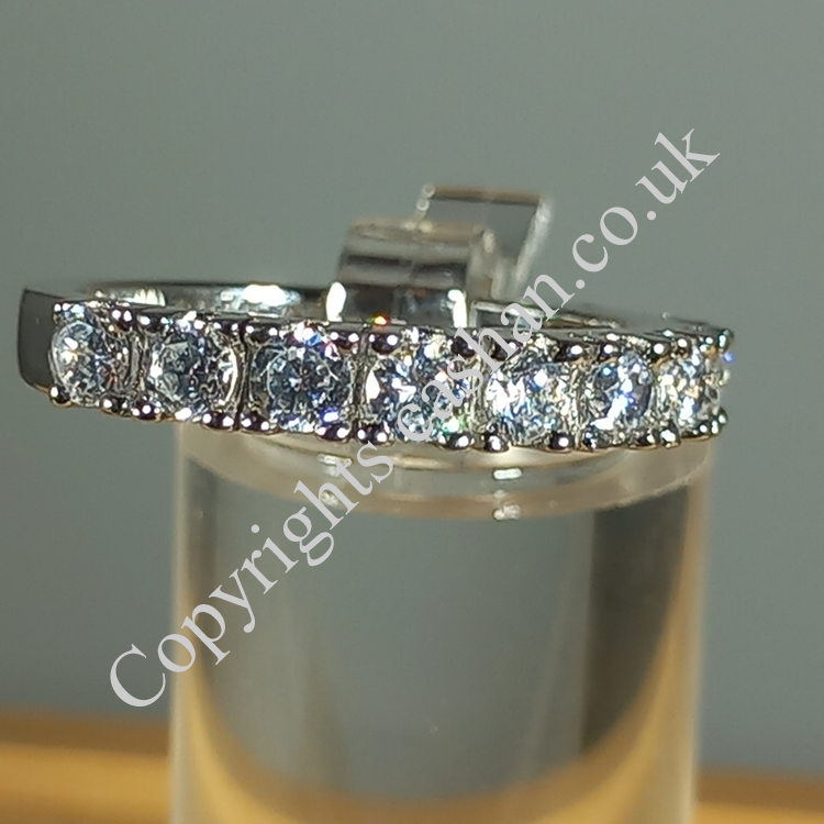Product Description: Add a touch of elegance and sparkle to your jewellery collection with this stunning half eternity ring. Crafted from high-quality 925 silver and weighing 3.7 grams, this ring is designed to offer both durability and timeless beauty. The ring features a row of 11 dazzling cubic zirconia stones, expertly set to create a captivating half-eternity design. With a total 1ct look, these brilliant stones mimic the fire and brilliance of diamonds, providing an affordable yet luxurious alternative. Each stone is meticulously cut and polished, ensuring maximum light reflection and a radiant shine. The polished 925 silver band complements the sparkle of the cubic zirconia stones, adding a touch of sophistication to this beautiful piece. Perfect for special occasions or as an everyday accessory, this half-eternity ring is a versatile addition to any jewellery collection. Key Features: