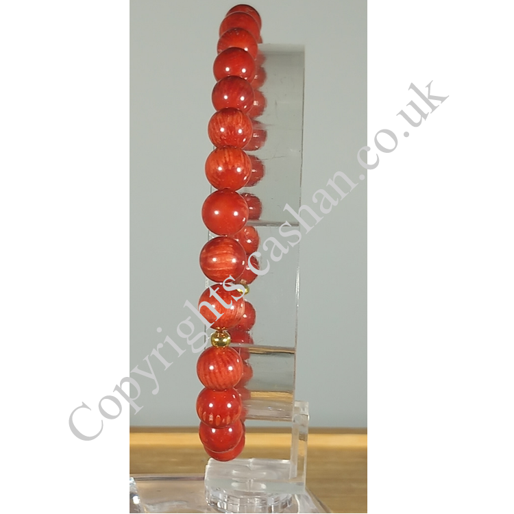 This vibrant stretchy bracelet features medium to dark red grade B bamboo coral beads, 6-7mm in size, and measures approximately 18cm. A striking and colourful accessory to enhance any outfit.